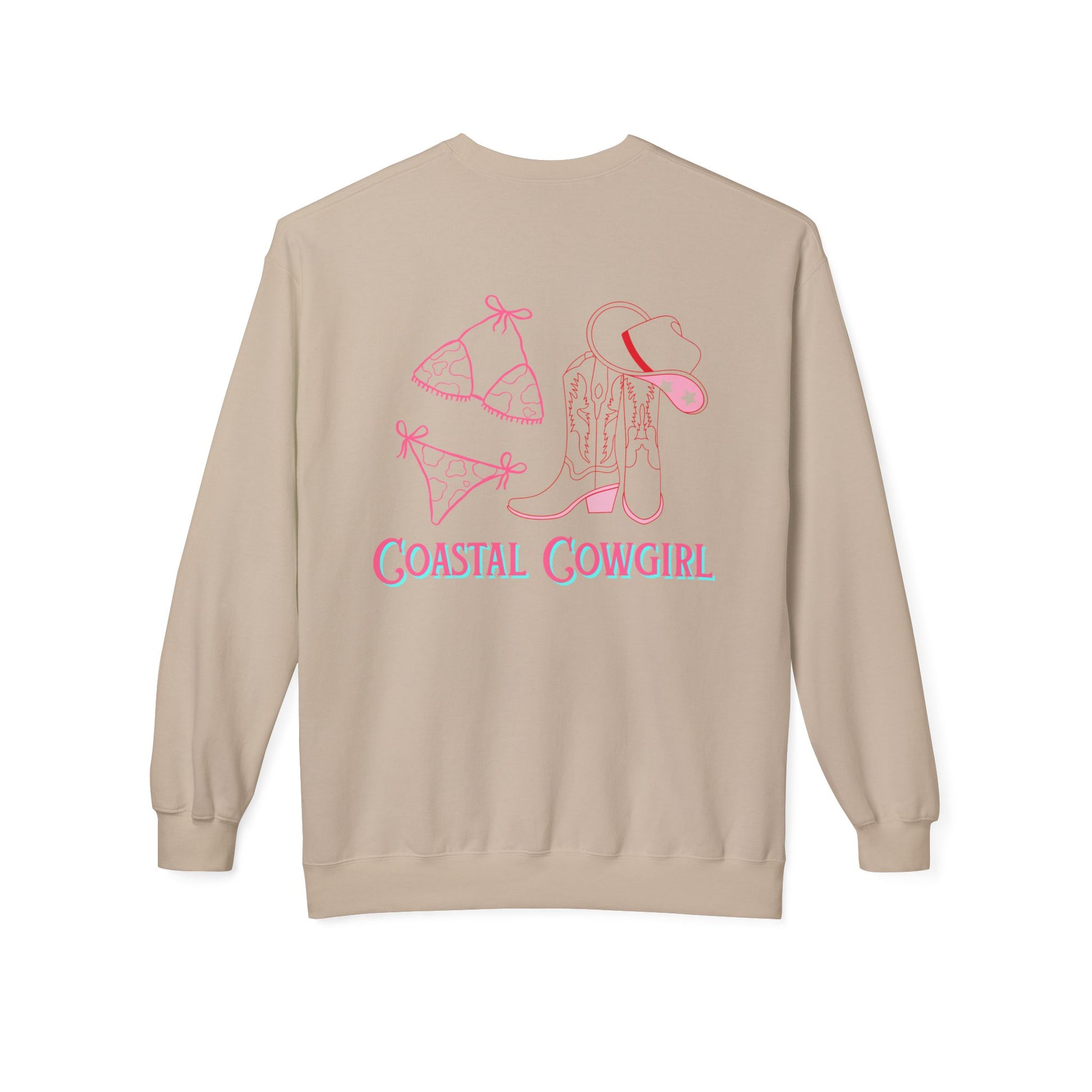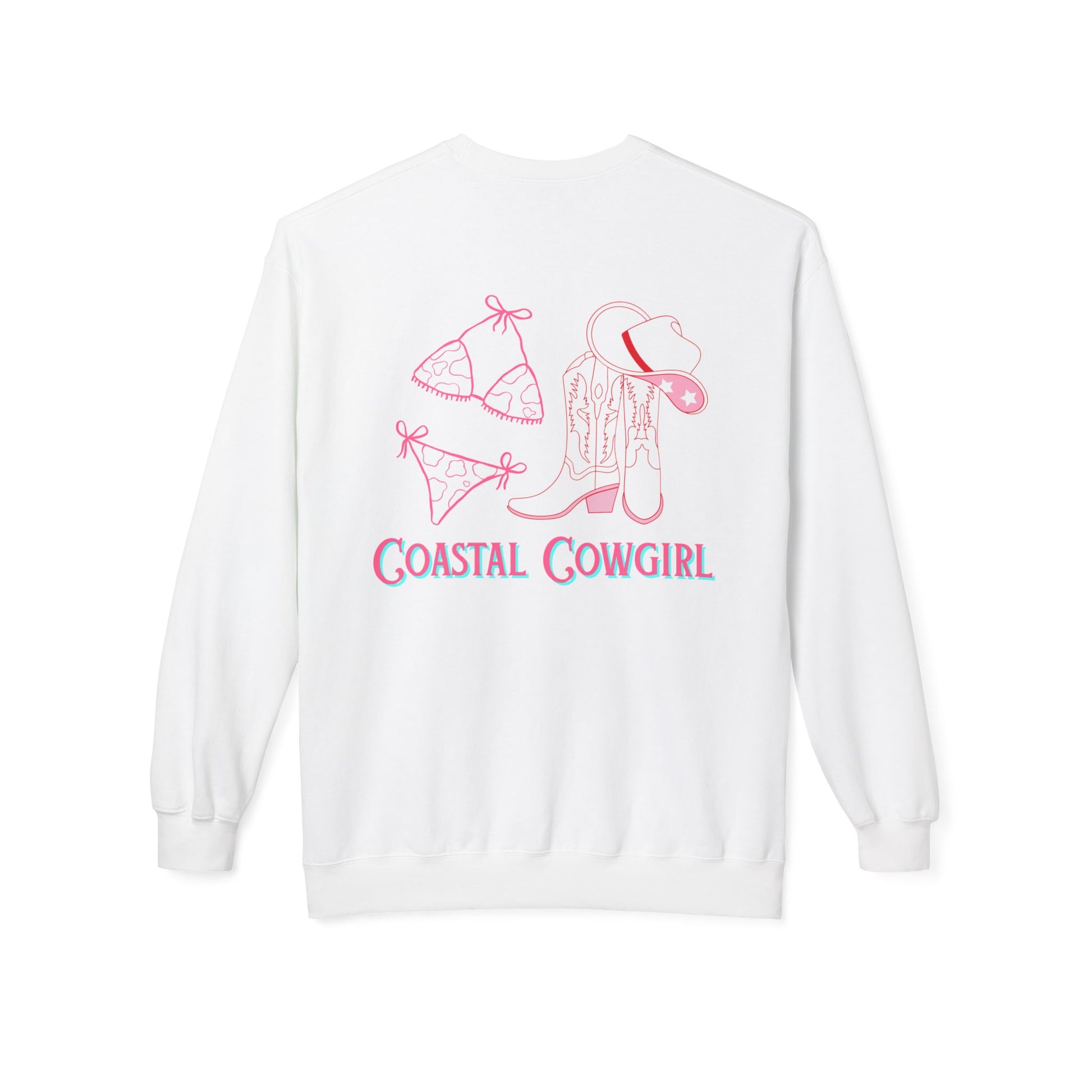 Channel laid-back coastal vibes with the Coastal Cowgirl crewneck. This midweight fleece sweatshirt is cozy and comfortable, perfect for cooler days, beach bonfires, casual outings, or lounging at home. Its relaxed fit and soft fabric make it an essential piece for anyone who loves the beach, cowgirl style, or simply a touch of whimsy in their wardrobe. Celebrate summer, seaside adventures, or your love for coastal life with effortless style.