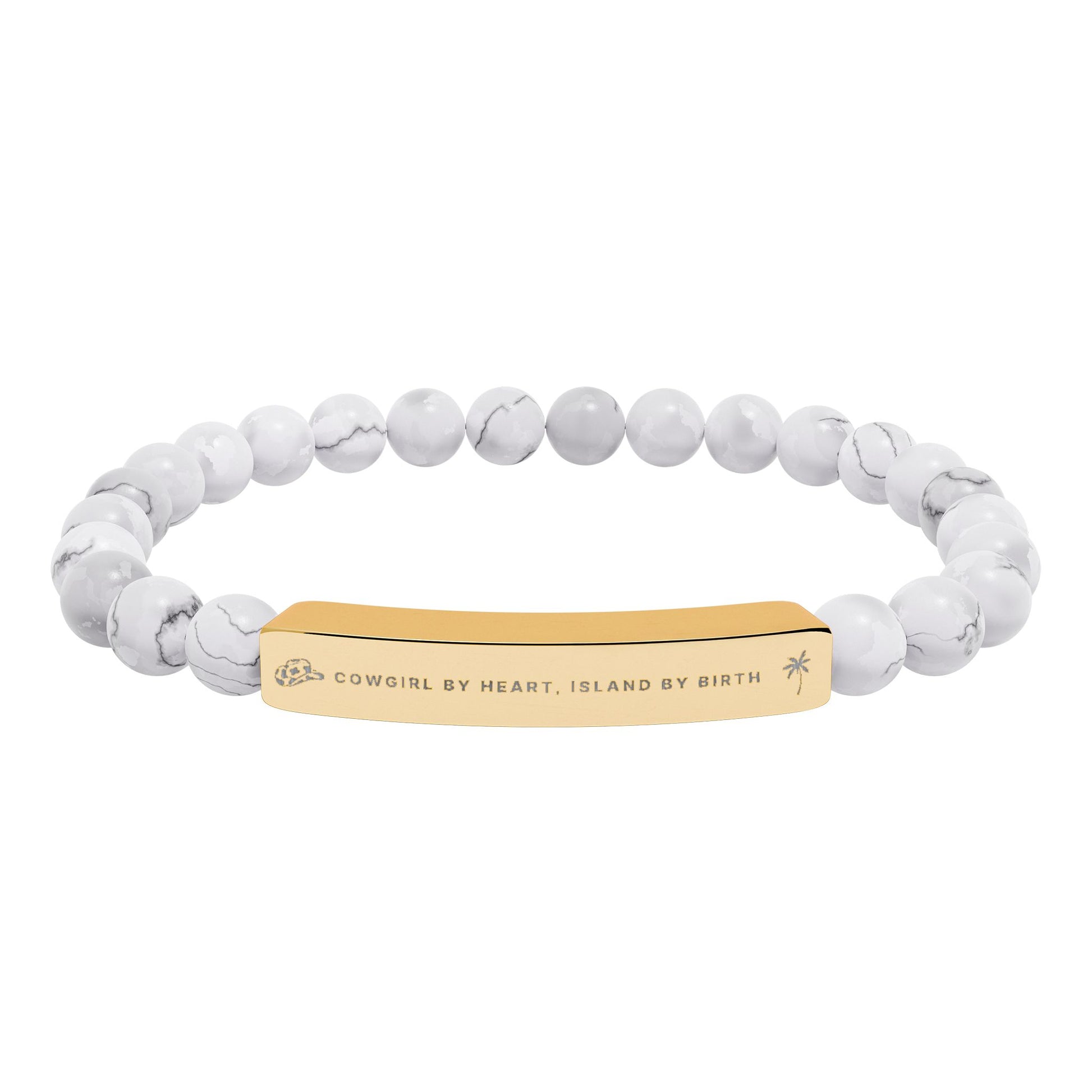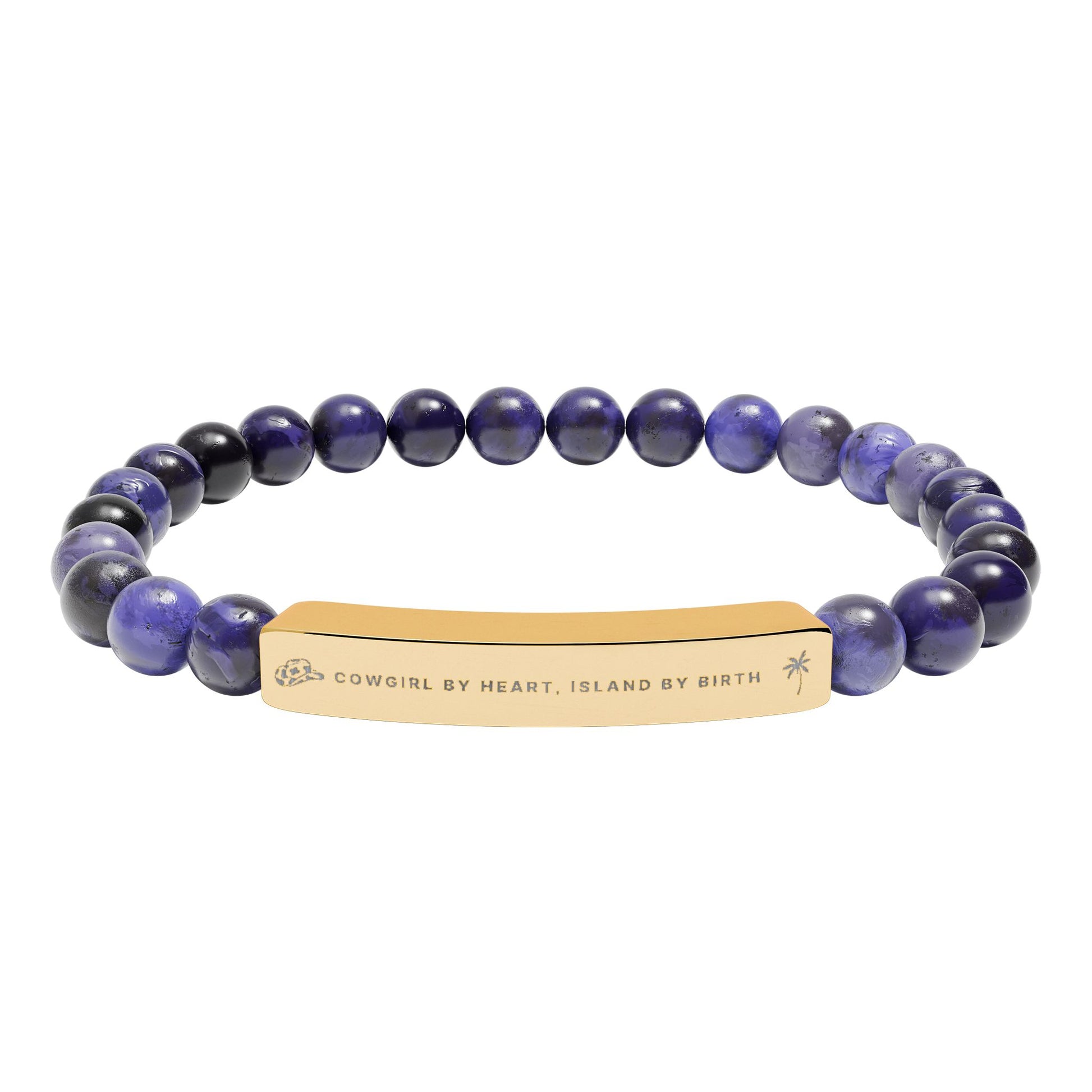 Our Cowgirl by Heart, Island by Birth Stone Bracelet — a beautiful fusion of coastal soul and cowgirl spirit. This natural stone stretch bracelet captures the essence of island living with its earthy tones and effortless elegance. Each stone is uniquely one-of-a-kind, reflecting the beauty of the sea, sand, and sunsets that inspire it.
